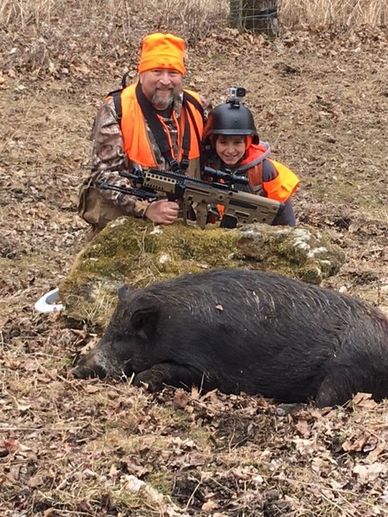 " Son’s, (11 yo), first boar. Tavor 5.56mm. "